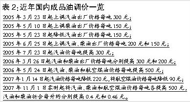 对于原油和成品油,业内一直有个非常形象的比喻,即未经加工炼制的原油为“面粉”,经过复杂的技术程序加工后生产出的汽油、柴油为“馒头”。在目前国际“面粉”价格屡次攀升的情况下,我国的“馒头”价却极少变动。