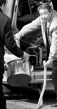 昨日上午,早报记者跟随质监部门对宝安公路顾村镇一家民营加油站、镇宁路一家中石油加油站进行暗访。