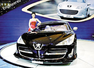标致汽车在上海车展展出了柴油概念车908 RC,该车搭载标致最新研发的12缸带微粒过滤器(FAP)的柴油发动机,排气量5.5L,最大功率超过515千瓦,最大扭矩超过1200 Nm,将柴油发动机的动力提升到了全新的层次,证明了现代柴油车不仅清洁环保,而性能也同样超越汽油车。