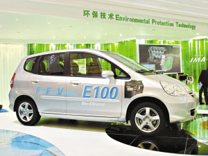 上海车展上,上汽的“上海”牌燃料电池轿车打破了传统汽车的布局方案,采用串联式的混合动力驱动结构,搭载上汽自主研发的超越四代燃料电池组,最大输出功率60千瓦,样车速度可达150公里/小时以上。“上海”牌燃料电池车很可能会成为国内首款量产的燃料电池车。此外,上汽集团还宣布,第一款混合动力车将于2008年小批量投产。上汽股份总裁陈虹自信地表示:在新能源技术领域,上汽与国际汽车巨头站在同一起跑线上,彼此差距并不大,上汽在新能源汽车领域有可能实现跨越式发展。