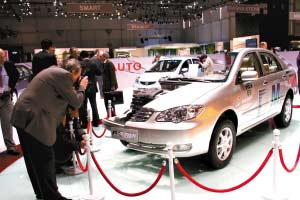 在今年的日内瓦车展,比亚迪展出F3DM双模混合动力车剖面车。