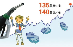 自去年8月美国次贷危机全面爆发以来,受美元走软的影响,国际油价就从当时的80美元左右一路涨至上周五的135美元,最高还曾创下近140美元的历史纪录。石油不仅是国民经济发展急需“液体黄金”,也与老百姓生活息息相关。尽管国际油价在节节上涨,但目前国内成品油价格受政府管制还“隔岸观火”——处在国际油价70美元左右的水平,国内企业、老百姓在政府的保护下,免遭高油价之苦。上周公布的国内5月份CPI尽管达到7.7%,远高于今年中央制定的4.8%的通货膨胀目标,如果国内成品油价格跟国际接轨,CPI数据肯定还要高很多。但是不断冲高的国际油价对中国能源价格改革带来了巨大压力。发改委负责人6月8日曾表示,中国将暂缓成品油改革以“稳定社会经济”。但6月11日官方公布的数据却表明,煤价和油价的上涨是推动5月份生产价格指数(PPI)创新高的主要动力之一,而PPI的上涨最终还是会传导至CPI上。