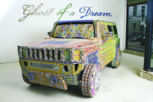 一辆用价值3.5万美元已兑奖的彩票制作的悍马H3近日在美国纽约亮相,该车的挡风玻璃、后视镜、轮胎等都是用废弃彩票覆盖而成。
