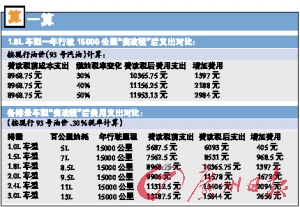 业内预测,国家开征燃油税后税率将在30%~50%之间。以该车主的1.8L排量车型计算,假设一年行驶里程为15000公里左右,平均油耗为8.5升/百公里左右,每年需加1275升油。按照目前广州93号油零售价每升6.25元计算,车主每年在油费上需要支出7968.75元,加上养路费1000元,目前每年这部分的总花费为8968.75元。