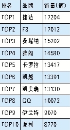 与上月相比,桑塔纳和雅阁排名提前,QQ再次进入前十名,表现也较为出色。
