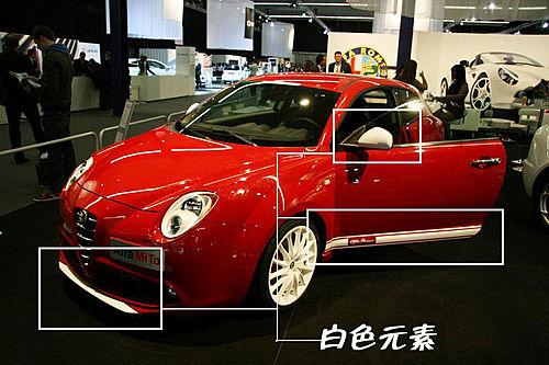 Veloce的外观与之前的描绘图有所区别,因该说好看得多。Veloce在标准版MiTo单一红色调的基础上,将前唇、尾翼、反光镜和侧裙等部分涂成白色,活力十足,而前挡风玻璃上檐的“意大利国旗”,很是醒目。