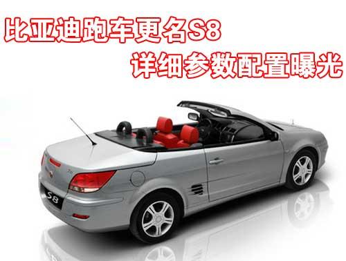 近日,比亚迪首款硬顶敞蓬轿车F8将更名为S8,加入比亚迪S系运动型轿车行列。比亚迪汽车方面表示,S8是一款运动味十足的产品,这也是更名的主要原因。相比F系而言,S系显然更加适合这款车SPORT的风格。另据了解,这款跑车将在车展上以S8新名展出,车展之后将择期推向市场。