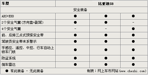 S8安全性能突出,万无一失。作为一款硬顶敞篷轿跑车,S8车身设计采用了合理的结构并对车体进行了加强。特别加强了A柱,既满足了转弯时对车身刚度的要求又增加了车辆抵抗正面碰撞的能力。制动方面,前、后四轮盘式制动,配以ABS和EBD作为此款车的标配,确保制动安全、稳定。四个安全气囊(方向盘,主驾驶座椅两侧及仪表台副驾),前、后排三点式预紧安全带,驾驶员安全带未带警示装置,手感应、遥控、中控、行车自动上锁车门锁,这些配置足以让乘员在任何时候都会感觉到安全、可靠。