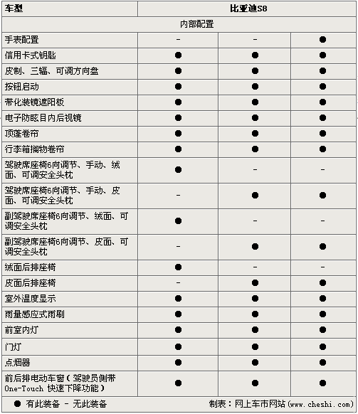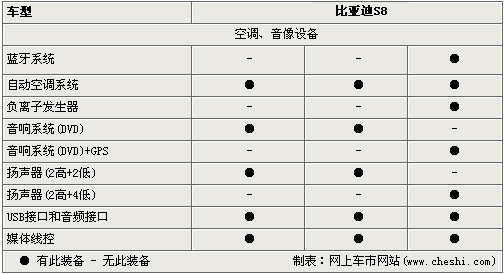 在空调、音像设备方面,S8配置了自动空调系统、DVD娱乐系统及USB接口等,同时高配的豪华型拥有蓝牙通信系统、GPS导航及负离子发生器等高端配置。 说了这么多,消费者更关心的应该是这款硬顶敞篷跑车的价格了,据内部人士透露它的价格将在20万元以内。这样的价格对于一款自主品牌的车似乎贵了一些,比亚迪是否会给我们带来惊喜呢?让我们拭目以待!