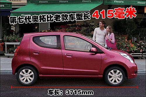 作为全面升级的换代车型,第七代奥拓的车长可达3715毫米,比国内市场销售的老款奥拓车型要长出415毫米。主要是车身轴距及前脸的设计使第七代奥拓和老款车型产生如此大的差距,而全新奥拓的车内腿部空间将更加宽敞。