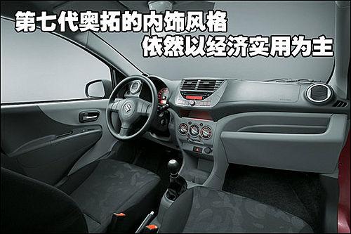 第七代奥拓的方向盘采用铃木的传统设计思路,造型与雨燕等车型基本一致,但由于成本的控制,并没有配备音响控制功能。全新奥拓的转速表采用独立设计,红色的背景光使这款车看上去更富运动气息,这一点与比亚迪F0的仪表盘设计几乎相同。