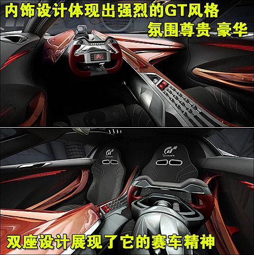 雪铁龙GT内饰的设计体现出强烈的GT风格。其内饰设计只能坐下一名驾驶员与一副驾驶,展现了它赛车的精神。内饰氛围尊贵,豪华,驾驶员位置处所使用的材料都极具高科技的效果,灵感则是来自于现实社会中的赛车运动。低驾驶位置的布局带来强烈的驾驶乐趣。目标是让驾驶者更加专注于路面,加上辅助功能的抬头显示系统可以充分地显示出驾驶信息。