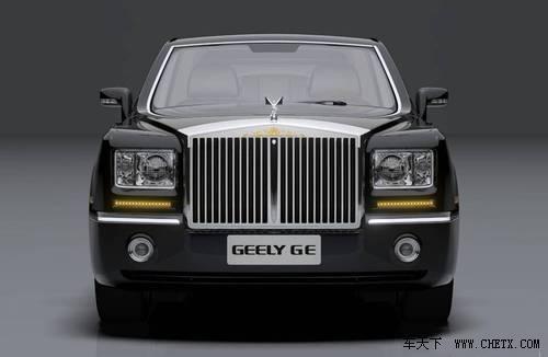 吉利GE的车长在5.3米左右,轴距3.1米左右。我们从外形上可以看出,它与劳斯莱斯幻影有着非常相似的造型,仅在细节处理上有所不同,GE大灯异常宽大,接近正方形,劳斯莱斯幻影上的大圆雾灯则移植到保险杠上,大灯与雾灯中间以长条形的方向灯隔开。而这也是吉利这款高档豪华轿车的理念:具有劳斯莱斯风格的产品。
