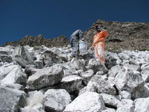 虽然戈尔德还没有收到由世界银行提供的20万美元奖金,但他的试验项目已经在海拔4756米的一个山峰上展开。这个原本白雪皑皑的山峰经过长期以来的剥蚀,岩层已经裸露在外。