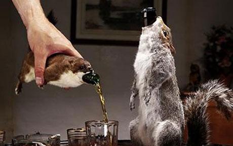 据中国之声《新闻纵横》8时40分报道,苏格兰一家酿酒厂日前将完整的动物尸体制作成啤酒瓶,以每瓶500英镑的价格出售。目前这家酿酒厂已经制作了12个尸体酒瓶,包括7只白鼬、4只松鼠以及1只野兔。在宣传照中,一个酒瓶从一只松鼠撑大的嘴里穿过整个身体,松鼠后仰着头、大睁着眼睛,真可以用死不瞑目来形容。