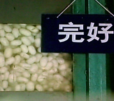 徐传金:茧站里第一天开始收1500块,茧贩子也是1500块,那么茧贩子到第二天他们涨高啦,他们觉得抢手了了,他们的数量收不到呀,涨高了20块,那么茧站马上调高,茧站调到1550,涨50块,到第三天茧站涨到1600,质量不看了,不看质量了,毛茧统统要了。