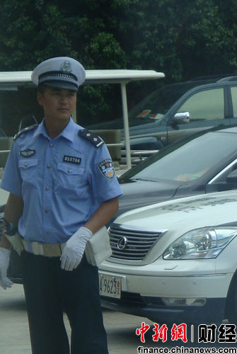 论坛现场交警在维持车辆秩序。中新网财经频道 何敏 摄
