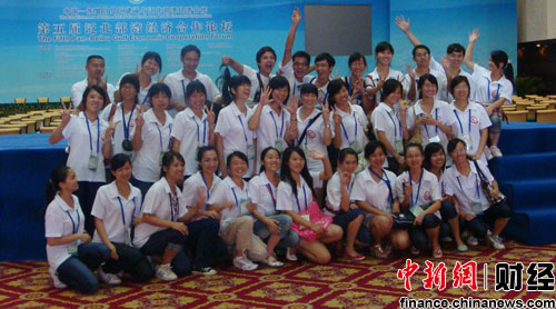 论坛闭幕后志愿者在现场合影。中新网财经频道 何敏 摄