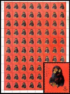 当年单张面值仅为8分钱的1980年版“庚申猴”邮票,如今单张的市价已超过8000元,30年内价格上涨了10万倍。如果说80版猴票单张价格涨幅巨大,那么,整版的价格可以说涨得疯狂。