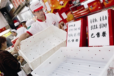 宫颐府、香港荣华等品牌,在超市的货品均已不全。一些之前选好礼盒、现在来买的顾客只能败兴而归或选择他品。