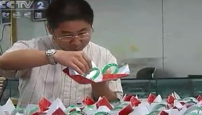 画面上就是翡翠原石的交易现场,由于翡翠原石实行暗标交易,投标者之间一般不会进行交谈,整个交易市场都笼罩在一种神秘的气氛当中。在这里,翡翠还只是刚从矿坑挖出来的石头,黑色或棕色的外壳也没有去掉,显得其貌不扬,很多石头都是被从中间切开,并进行了打磨抛光,方便投标者查看翡翠的成色。画面中可以看到,前来投标的人都会手拿一个强光电筒,根据石头的透光度、色泽的深浅,以及是否存在裂纹和杂质来评估石头的价值。