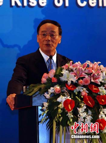王岐山在演讲时表示,伴随着中国政治化进程和中部掘起战略的实施,中部地区迎来了历史性的发展机遇。中部地区要坚定不移地推进改革开放,进一步解放思想,转变观念,以中国改革试点为突破口,加快体制机制和组织制度的创新,更大程度地发挥市场的配置、资源的聚集作用。要扩大对内开放,把引进来、走出去更好的结合起来,以更加完善的基础措施,更加优质的公共服务、更加规范的市场秩序,吸引更多的境内外投资者参与中部地区崛起。