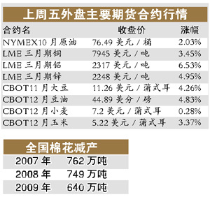 棉花价格的大幅上涨有多方面因素的推动,国内棉花减产是涨价的基础。同时国际市场上棉花价格的上涨也给国内棉花价格带来推动力,国际棉花价格自今年7月份开始累积涨幅已经达到35%。