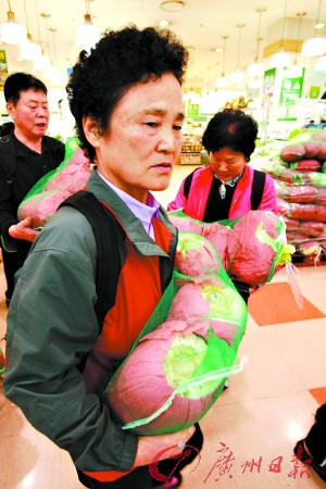 当日,该超市以每棵2500元韩元(约合人民币15元)的低价限量供应300棵白菜,在10分钟内被抢购一空。