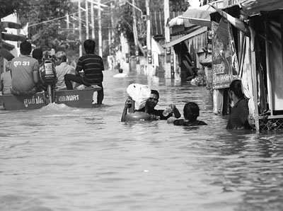 自10月初至今,连场暴雨洪水肆虐泰国24个府,约70万英亩农地受灾,其中绝大部分是稻田。农业部长表示,当洪水退却后,将评估经济损失。泰国水灾至今造成最少12人死,邻国柬埔寨更有20人丧生。