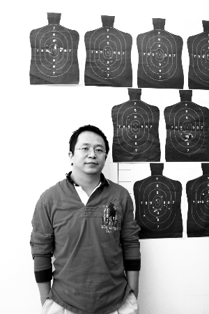 ▲360公司董事长兼CEO周鸿祎爱好射击,他常把他打过的靶纸贴到办公室墙上。本报记者 孙纯霞 摄