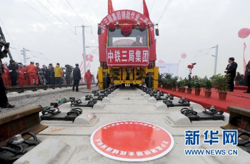 铺轨工程于2010年7月19日首先在徐州段拉开序幕,随后在济南、虹桥、南京、李窑铺轨基地陆续展开。