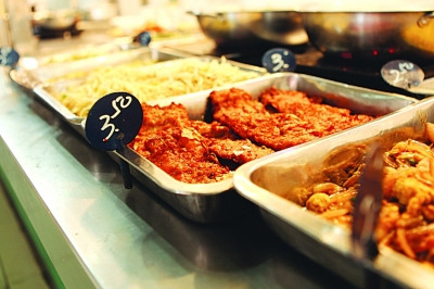 “我们食堂也涨了。”身材小巧的小陈饭量不大,但每顿饭也要吃到6元钱左右。像番茄牛肉盖浇饭、香菇鸡块盖浇饭的价格都要6.5元。小陈爱吃羊肉,但食堂里和羊肉搭边的菜的价格却让她望而却步:孜然羊肉盖浇饭、白菜羊肉盖浇饭的价格都在8元以上,这让小陈大呼“吃不起”。而一年前,这些“开洋荤”的菜的价格还都是6元到7元左右,但现在一个最便宜的三鲜盖浇饭也要5.5元,素菜的价格也涨了3毛到5毛不等。