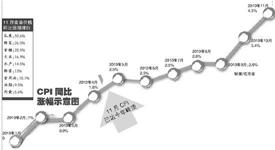 市统计局综合处处长夏沁芳分析认为,11月本市CPI同比上涨4.3%,这个涨幅应是今年CPI的最高位了。预计12月价格水平应低于11月。
