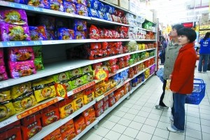 记者昨天上午在位于北京白石桥的家乐福超市看到,种类繁多的方便面品牌中,难觅康师傅的身影。以前摆放康师傅方便面的货架也被其他品牌的方便面代替,一位推着购物车的女孩在长长的方便面货架旁边来回转了两圈,对身旁的朋友说:“奇怪了,怎么没有康师傅的呀。”