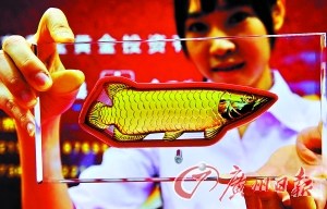 记者昨日在东山百货看到,该百货推出的“年年有余”金龙鱼系列投资金条,外观设计为金龙鱼造型,共5种规格。以往这一类的黄金产品一般是按照首饰金价格出售的,但是如今只要花材料金的价格就可以购买。比如说,市民买一条两百克“金龙鱼”有望节省8000-10000元。 (记者林晓丽 通讯员王超、戴崇业)