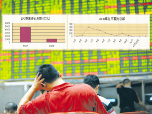 从2008年1月1日至今,上证综指从高点5522点跌至12月12日的1954点,下跌幅度超过60%。市场深幅调整不仅使投资者“巨亏”,同时也让IPO规模大幅缩水。