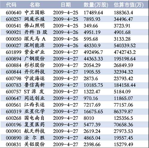 值得一提的是,本周解禁的204亿股包括了A股和H股两部分。H部分是28日将解禁的工商银行(601398)120.92亿限售股,这部分股份占了本周统计解禁总量的59%,解禁对A股影响不大。工行日前公告称,本周,高盛共持有164.76亿股工行H股,有一半将于4月28日解禁,其余将于10月20日解禁。而高盛3月25日宣布,自愿将所持有的80%(约131.8亿股)工行限售股限售期延长1年,至2010年4月28日;余下的20%将于4月28日解禁。如高盛拟出售其将于2009年4月28日解禁的H股股权,高盛将会研究能提高价值及降低市场影响的可行方案,并优先考虑以私募配售方式出售给投资者。