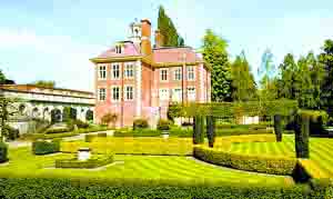 这处房产由主体建筑和附属建筑构成,主建筑内有至少7间卧室,附属建筑里还有4间卧室。会客室有17.4米长、两层楼高。房屋周边有两处围场、几个美丽花园。园中有一座圆顶风向标建筑。