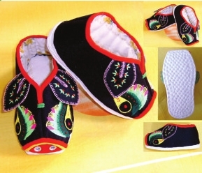周阿姨店里的兜肚、针织品类都是她自己做的,绣花鞋是她70多岁的母亲绣的,鞋底是周阿姨纳的。周阿姨每天的工作强度看订单的多少,忙的时候要做到晚上11-12点(是边看电视边做),做不完还要找帮手,不忙的时候一上午就差不多能完成。