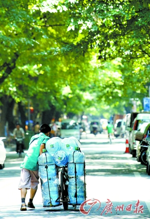 今年春节后广州月薪2000元招不到送水工的新闻曾引起全国关注。日前记者采访发现在天河体育中心写字楼周边水店的“勤快”送水工在高峰期的八九月份月薪最高竟可达5000元,而且多数水店整个夏天几乎都是在送水工奇“缺”的状态下咬牙“挺”过来的。记者调查发现,由于送水工过于辛苦,已成“短线”工种,部分送水工做一两年攒下钱即转行,多数水店难觅3年工龄以上的熟手送水工。