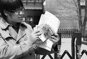 昨日上午,王昊来到位于金融街的工商银行,将“内需金”取出,账户随之注销。为纪念“内需金”计划,王昊要求银行打印汇款详单。由于汇款网友众多,工作人员打印详单花了2个多小时。