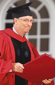哈佛大学学生报《哈佛深红报》将盖茨称为“哈佛最成功的辍学生”,他在1973年秋季入读哈佛,两年后辍学,和儿时玩伴艾伦一同创办了微软公司。在离开哈佛30多年后的2007年,盖茨终获得母校授予荣誉博士学位。