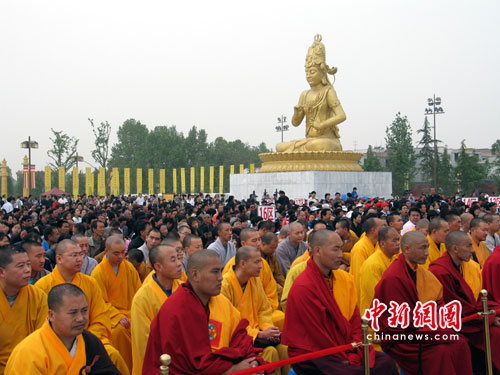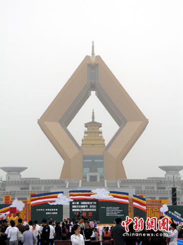 中新网宝鸡5月9日电(记者 冽玮)9日上午,第十届中国宝鸡法门寺国际文化旅游节在陕西宝鸡佛教圣地法门寺文化景区合十舍利塔十万人广场开幕。