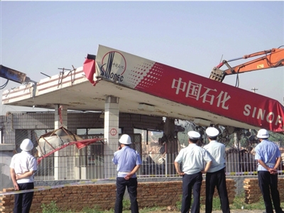 中石化北京分公司相关负责人介绍,该加油站此前被列入一条在建轻轨的规划范围,公司准备与相关部门商讨采取“拆一还一,先建后拆”的模式,但一直未能和相关部门达成协议。此次加油站突遭强拆,中石化北京分公司方面表示难以接受。