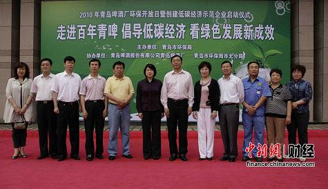 中新网6月21日电 为了响应今年世界环境日“低碳减排. 绿色生活”主题,倡导市民低碳生活,增进企业、政府与社会各界的交流,6月18日上午,由青岛市环保局主办、市北环保分局、青岛啤酒厂承办的“走进百年青啤,倡导发展低碳经济,看治污减排新成效”的青岛市著名企业环保开放日暨青岛啤酒厂创建低碳经济示范企业启动仪式,在市北区登州路56号青岛啤酒厂隆重举行。