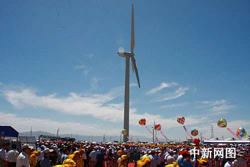 中新网酒泉8月8日电 (记者 殷春永)今天下午,国家能源局、甘肃省政府在酒泉市举办酒泉千万千瓦级风电基地一期工程开工仪式,这是中国首个千万千瓦级连片开发、并网运行的风电基地。