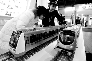 昨日上午,2009北京国际城市轨道交通展览会在老国展开幕,210多家来自国内外城市轨道交通建设企业参展。作为东道主,北京地铁公司的展位上,最显眼的就是1比20大小的房山线列车模型了。