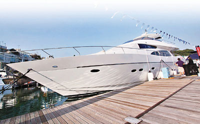 游艇展全场最贵的是产自丹麦的二手游艇“Royal Denship”,其代理刘嘉纹表示,随着经济好转及汇率的波动,今年全新游艇多提供不少折扣,使二手游艇较去年同期降价约5%。