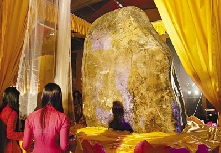 中新网1月19日电 据香港《文汇报》消息,越南一间珠宝公司昨日展示一块价值200万美元(约1,552万港元)的罕见巨型翡翠,计划由一支共50名艺术家和雕刻家组成的队伍,花2年时间,把这块重35吨的翡翠,雕成约10呎高、20吨重的全球最大玉佛,并打算申请列入《吉尼斯世界纪录大全》。