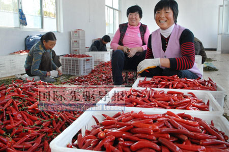 “去年辣椒种的面积大,但是卖得不好,赶上金融危机,出口很差,农民的热情给打坏了。”刘跃刚介绍,很多山东的农民,每年都要去内蒙、新疆等地包地种植辣椒,由于去年赔钱,今年去的人少了很多。“今年产量小,只有去年的五分之一,”刘跃刚估计。